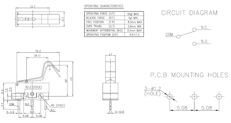 1. Rating : 1A 125V AC, 0.5A 30V DC